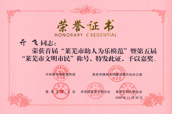 • > 亓飛榮獲萊蕪市“希望工程圓夢大學行動”貢獻獎
