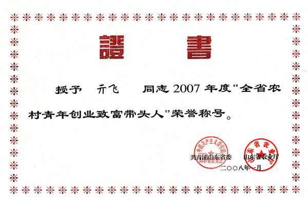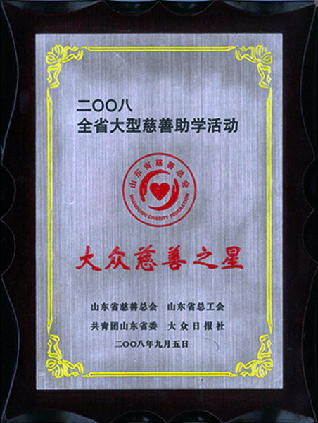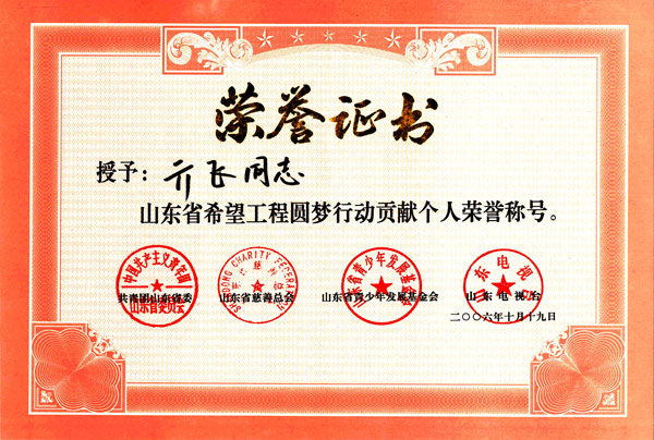 • > 董事長兼總經理亓飛授予“山東省希望工程圓夢行動貢獻個人榮譽稱
